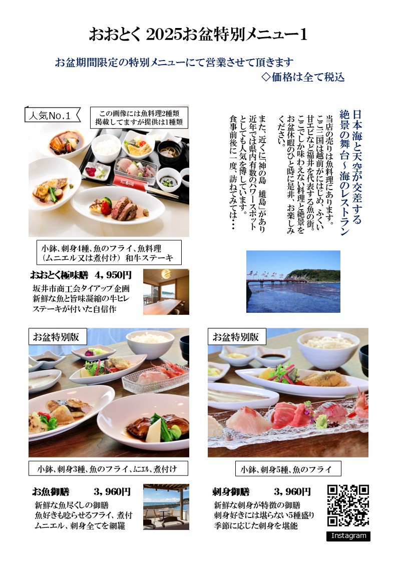 2025年06月14日(土)東尋坊三国温泉おおとくよりお知らせです